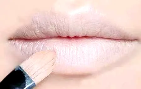 第一步:用遮瑕刷沾取粉底液或遮瑕膏将唇部本色遮盖完全。