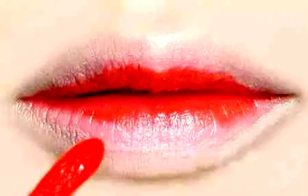 第二步:用唇膏唇釉等产品在上下嘴唇最内侧涂抹一条直线到嘴角,并涂出些许唇峰和下嘴唇。