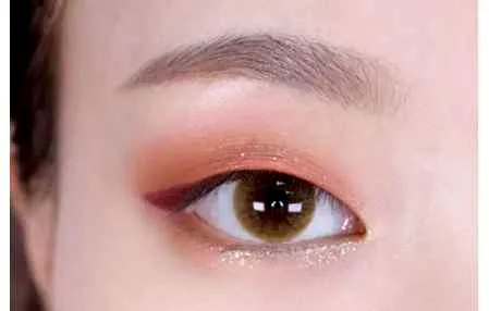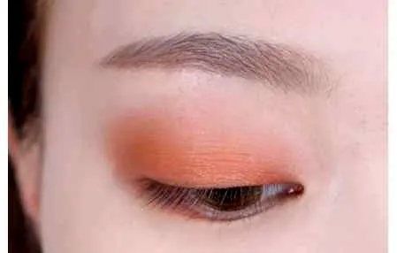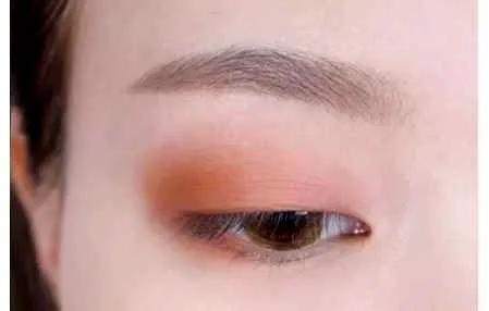 第二步:上下眼皮眼尾橘红色珠光眼影晕染。
