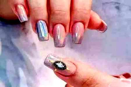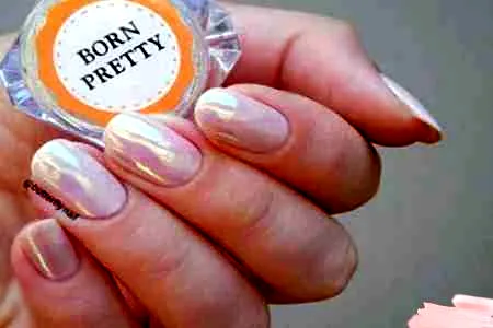 5.用硅胶棒、手指或者棉棒取少量极光粉在甲面轻轻拍打后摩擦
