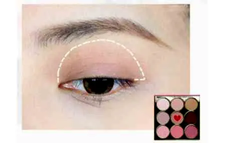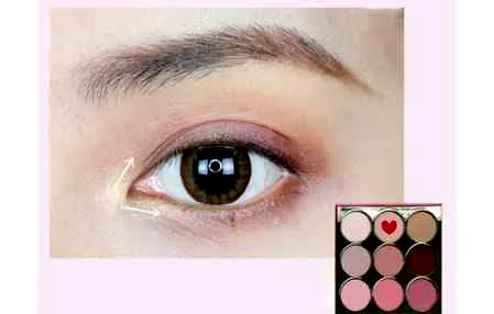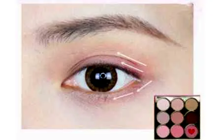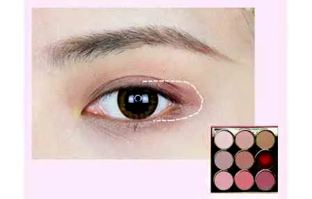 第二步:用锥形刷沾取藕粉色眼影从眼尾往前涂抹。