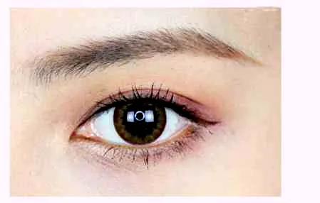 第三步:用锥形刷沾取棕色眼影小范围的涂抹在眼影后半段。