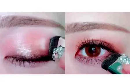 在沾取完眼影粉后,将深色的一边贴着睫毛根部,从眼头刷到眼尾,来回刷几次就可以了。然后再用刷子上的余粉,深色的一边靠着下眼尾,轻扫一下下眼睑就可以了。