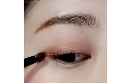第二步:用眼影刷沾取肉橘色眼影涂抹在图中的虚线范围内。