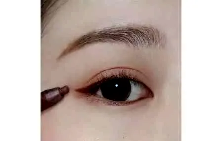 第五步:棕色的眼线笔从眼中开始画一条微微上扬的眼线。