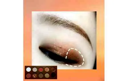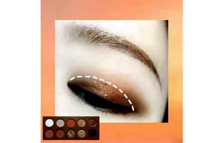 第二步:再用眼影刷沾取棕色眼影上在比双眼皮褶略宽的范围内,大概是图中白色虚线范围。