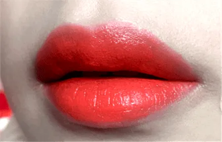 阿玛尼红管300本身就是一个正橘色,所以厚涂之后呈现出来的颜色就是橘色,对于白皮来说超级显白,但是黄皮的话就不怎么友好了。所以建议黄皮仙女们可以薄涂或者是直接画咬唇妆都可以哟~