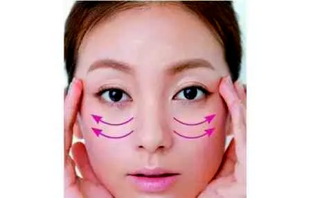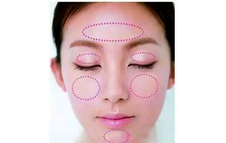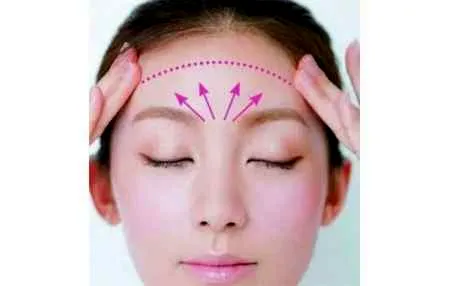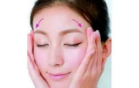 第五步:额头要用扇形的轮廓涂抹,用中指和无名指,沿着额头的轮廓呈扇形涂抹。注意不要碰到发际线。