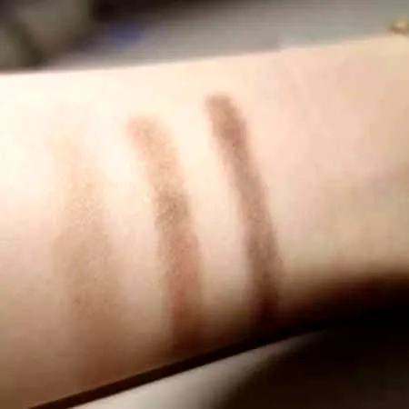 用手指分别在手腕上涂抹试色,感觉颜色很实用,也比较上色,但显色效果又不会像眼影般浓重。所以手残党也不会因为“下手过重”而变成“**眉”了。