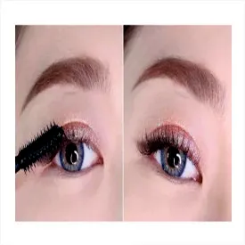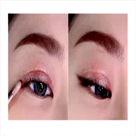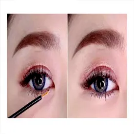 Step5 最后妹子们在刷睫毛膏的时候,不要遗忘了下睫毛。同时妹子们还需要沾取珠光色眼影,分别涂抹在眼头和卧蚕处起到提亮作用,一个显眼又不夸张的小烟熏妆就完成啦~
