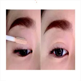 Step1 首先妹子们需要用眼部遮瑕液或者是眼部打底产品,在眼皮处抹开,这样可以让眼部肌肤更加的干净,也可以让后面的眼影更加显色。