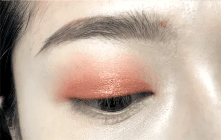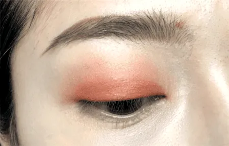 然后再取一橘色眼影,分别涂抹在上眼皮的前1/3和后1/3处。