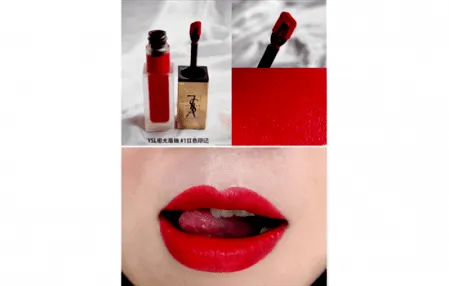Ysl哑光唇釉 #1可以说是一个正红色,但是上嘴之后又会有一点偏橘调或者是片玫红调,非常的显白,不挑皮肤,任何肤色都可以驾驭的哟~