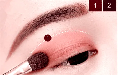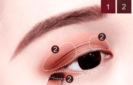 Step1 首先妹子们取一红棕色眼影,晕染在整个上眼皮处,作为打底。