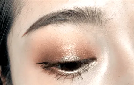 Step3 再取VNK五色眼影104右上角的香槟金色,分别晕开在上眼皮前1/3和后1/3处。