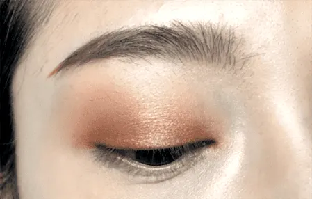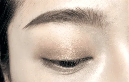 Step2 接下来取VNK五色眼影104左下角的香槟色,涂抹在整个双眼皮处。