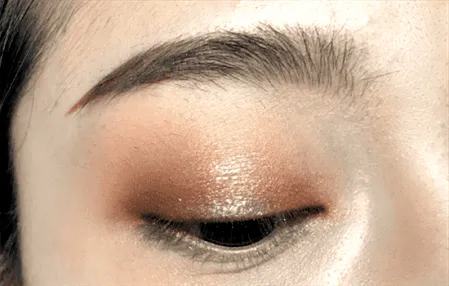 Step5 之后取VNK五色眼影104中间的金色亮片色,点涂在上眼皮正**。