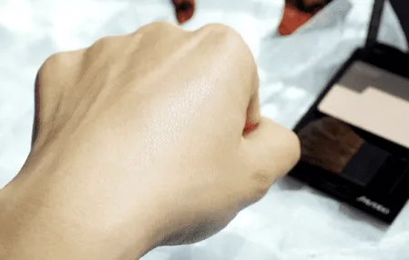 粉质不是大闪片的廉价感,是非常细腻低调的柔光感,和一般的高光不同,它有独特的蓝光效果,但不会夸张。