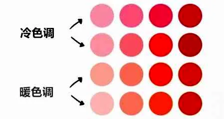 下面放上一张冷暖色调适合的口红颜色图,大家可以看一下,如果你是冷色调皮肤,你适合的口红颜色就如图上显示的。
