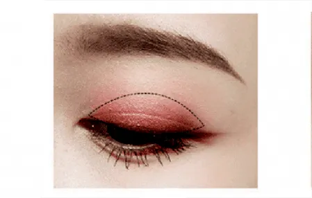 Step2 接下来取玛丽黛佳网红九宫格眼影第一排的第三个眼影,画在上眼皮超过双眼皮褶皱一点处。