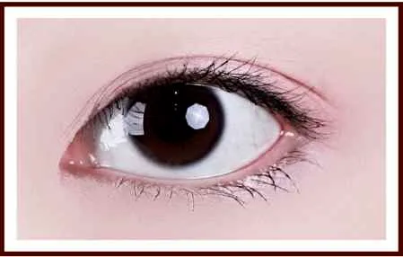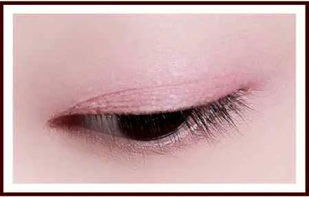 再用微珠光的粉色,平铺在整个眼眶内,并且晕染到下内眼睑,眼球下方加深