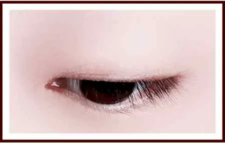 眼影颜色不重,睫毛倒是根根分明。眼线也不明显,用眼线笔把睫毛空隙填满,画到最一根睫毛,要用棉签晕染开
