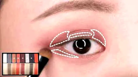 其实在涂双眼皮的时候用到的颜色是比打底颜色浅的。这是为了突出眼窝的轮廓阴影,先用深色大面积打底,然后用浅色涂渐层。也是一种眼影的画法。