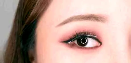 填内眼线的时候可以把镜子放在下方。这样往下看镜子填睫毛根部的时候,眼睛处于一个很放松的状态,不会太抖。