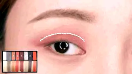用这种细头毛多的刷子,用深棕色眼影在眼头、眼尾加深,这个阴影的宽度不要太宽,只要保证不超过双眼皮褶的宽度就可以了。要不然就该抢了酒红色的风头了。