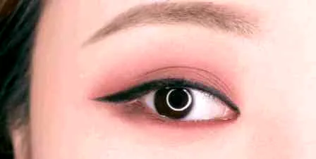 还有就是拉长眼尾的时候,有一个小 tip。一般圆头的眼线笔更容易填补睫毛根,但是用它拉出来的眼尾线条像这样就不会那么锐利。