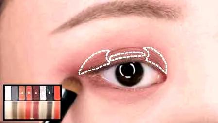 可以注意一下这里上眼影的手法,都是打圈儿涂抹晕染的。涂出来的颜色深浅会更加均匀。
