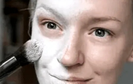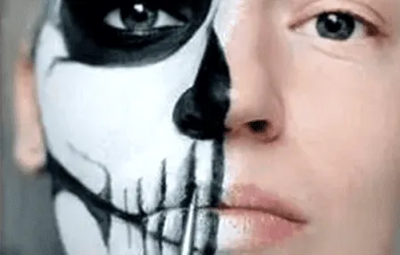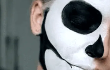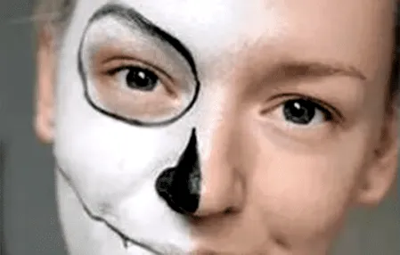 第二步:将白色的颜料在半面脸上大面积的铺盖,打造“骷髅面”;