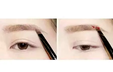 step2:然后用眉笔或眉笔勾勒出眉形,眉尾要微微下落。注意眉峰也不要太突出,自然平缓即可。