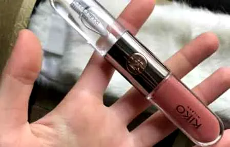 kiko的双头唇釉有色的一端是较浓稠的质地,而且具有浓郁饱满的颜色,可以先涂哑光的一头,再叠上透明的唇釉,透明的那一头液态的透明色唇釉,它透明纯净,叠凃之后就算是吃饭都不会掉。