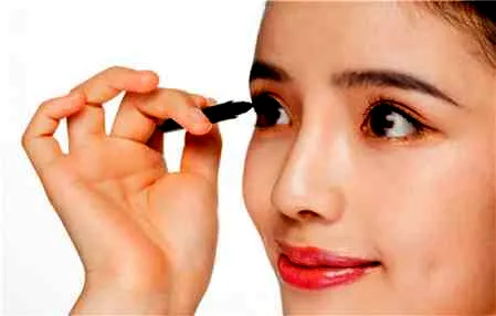 四:从眼尾向外,在双眼皮的结束处,使眼线上扬。