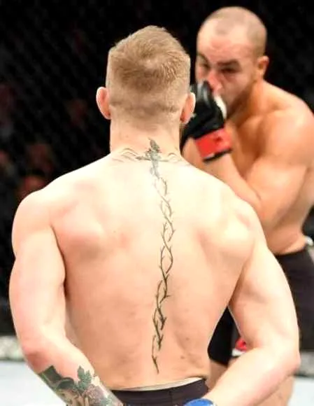 而老虎头上面的英文则是他的名字“麦格雷戈”,老虎头下面的英文则是“臭美昭著”的意思。可见嘴炮的身上的纹身有这么多的意义。