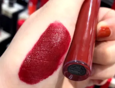 在手臂上试色可以看出这是一个比较深的**红,颜色非常浓郁,据说是绝版色,颜色是真的形容不出的美