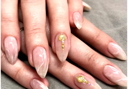 不挑肤色的哦。这种粉红石英的指甲彩绘,因为选用与肌肤色调相近的粉红色,因此很适合任何肤色的女性来搭配,加上轻透的颜色呈现,即使是上班族也可以尝试,不会过于夸张,但很有质感。继大理石系的指甲彩绘受到很多女孩欢迎之后,最近,欧美掀起一股粉红石英彩绘风潮,完全美到炸!白色的晶石纹路看起来相当有质感。带有微微的透明感,让指彩看起来更轻盈。