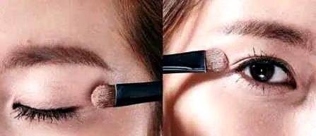 Step1(左):浅珠光色打在整个眼皮,前1/4再用雾面叠加以免泡肿。