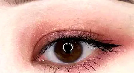 第四步:亮片桃粉色眼影点按在眼皮**位置,作为提亮。