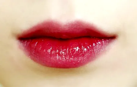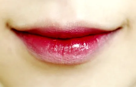 实物膏体是酒红色,但是在手上和纸上都是水红色中带紫色,因为照片不像原色所以我调色调成了原色,但是我上嘴是红色的,紫色不明显,因为这款质地太滋润不留色,所以会掉色。