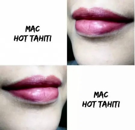 hot Tahiti和6.party line都是**色,hot tahiti是glaze质地,比较水润,显色度也没有party line(cremesheen质地)高。这个色系很适合黄皮。