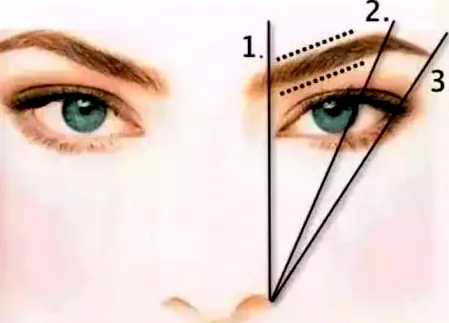 step1:三个基本的点要找准。眉头的起点位置,可以用笔竖着看鼻翼和眉头的对称点,这个就是起点的位置。眉毛柔缓下垂的位置就是鼻翼和眼球**的延长线。眉毛结束落点的位置就是鼻翼和眼位的延长线。