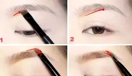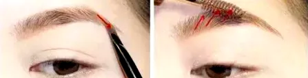 step3:眉尾处的眉线是需要向下刷,这样才有弯弯柳叶眉的效果。