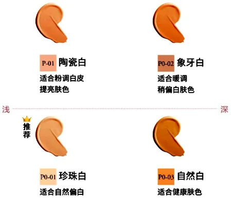 陶瓷白和象牙白,其中陶瓷白适合粉掉白皮,象牙色适合暖调,稍微偏白的肤色。还有珍珠白,适合白色肌肤,比较推荐的一个色号,另外一盒就是不容易踩雷的自然白,也就是大家常说的自然色。