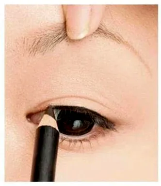 用一只手将上眼皮拉高,用眼线笔从眼角内向眼角外分成四五短,尽量靠眼睫毛根部来回描画,最好用黑色眼线笔或眼线液。