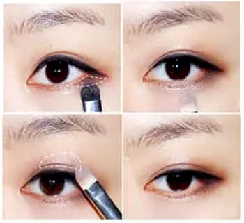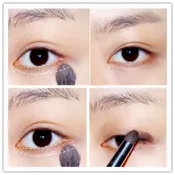 第4部:如箭头所示,用眼影刷按照箭头所示轻扫上去,增加立体感。注意一点,眼刷在刚开始比较容易上色,所以要抹在想要突出的部位。