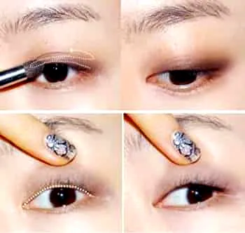 第16部:在眼部打高光,可以让眼睛变的更加立体。也可以根据自己的脸形需要来修正。