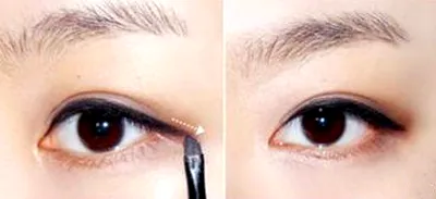 第6部:画眼线时与顺着双眼皮的线条,一笔到底,会更显自然,服帖。若是眼睛下垂,就需稍微上扬些。