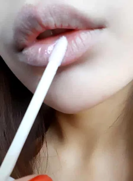 在唇部用遮瑕膏遮住原本的唇色后,用橘色系唇彩点缀。